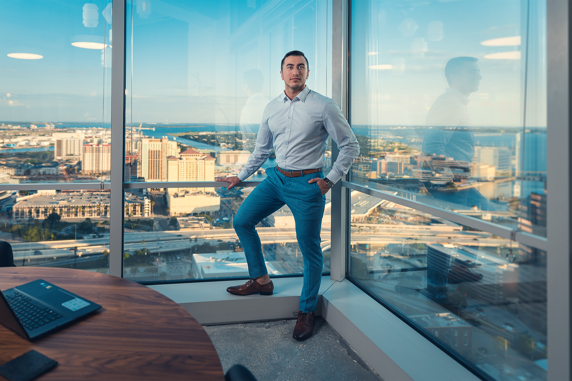 Lifestyle photoshoot in Downtown Tampa at Curtis Hixon Waterfront Park, and in the Suntrust highrise building